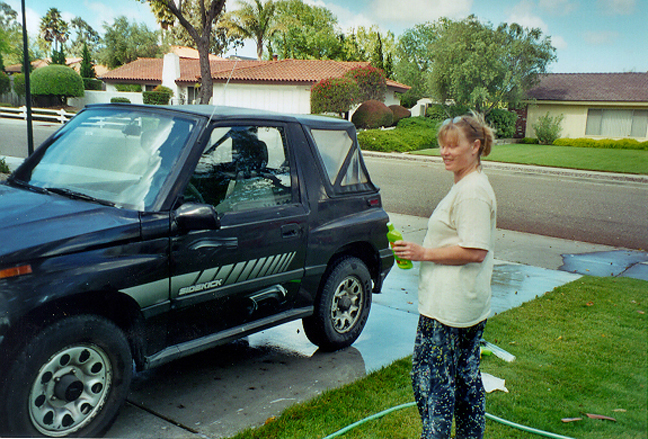 Washing the car. |